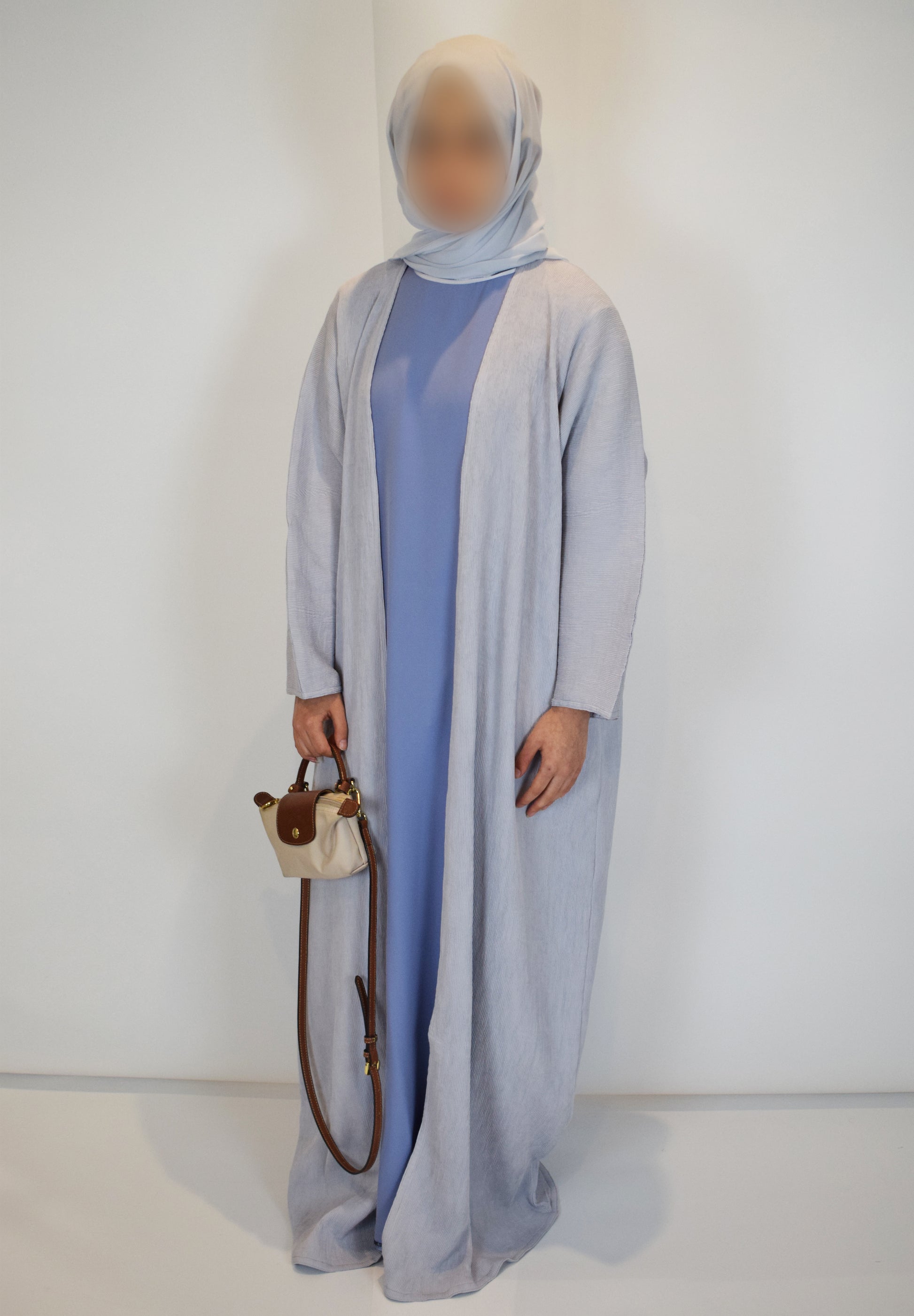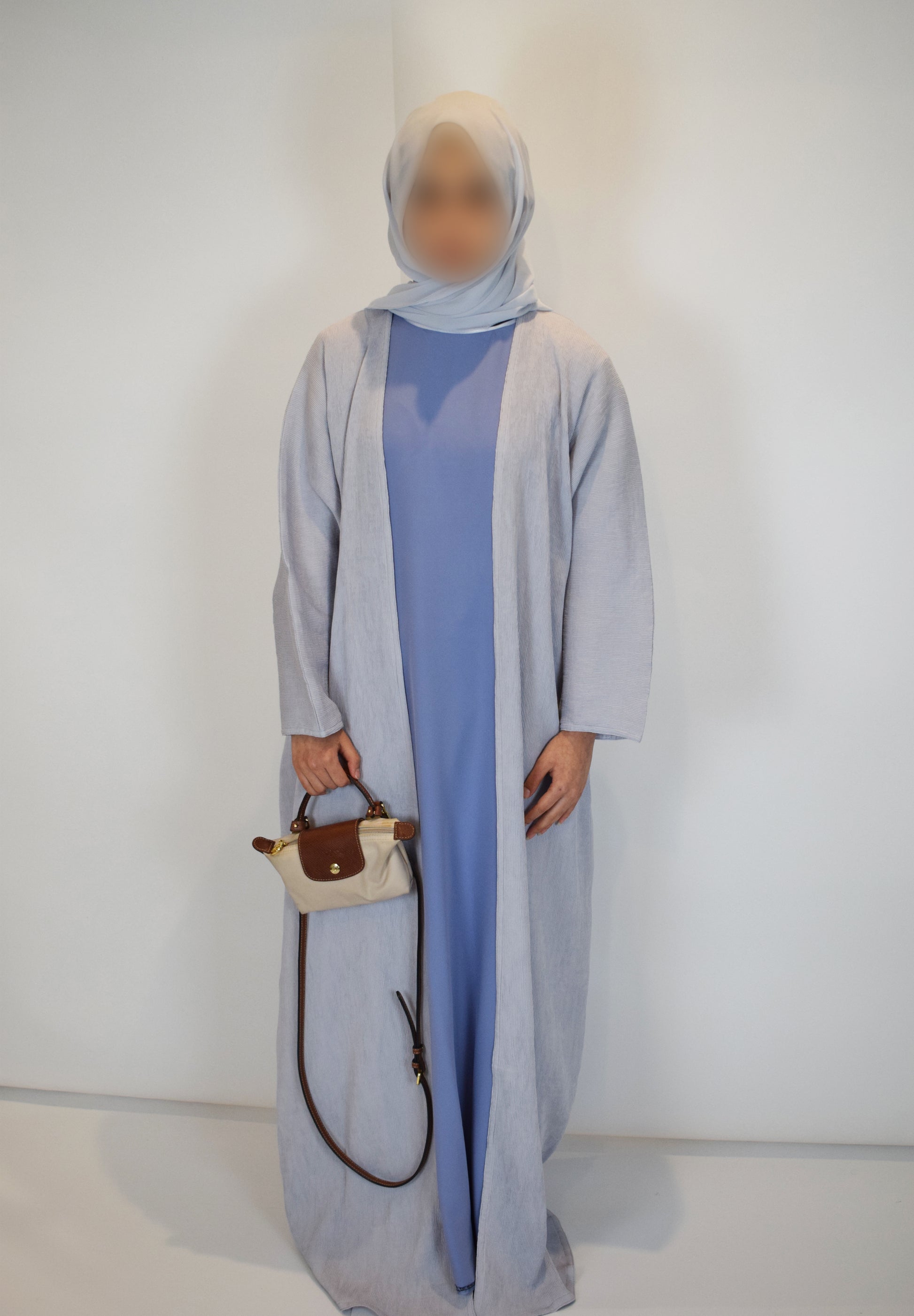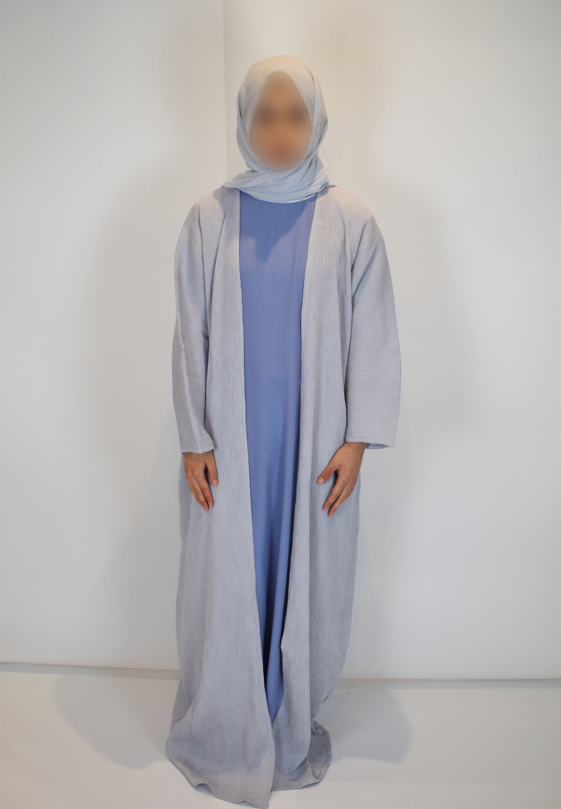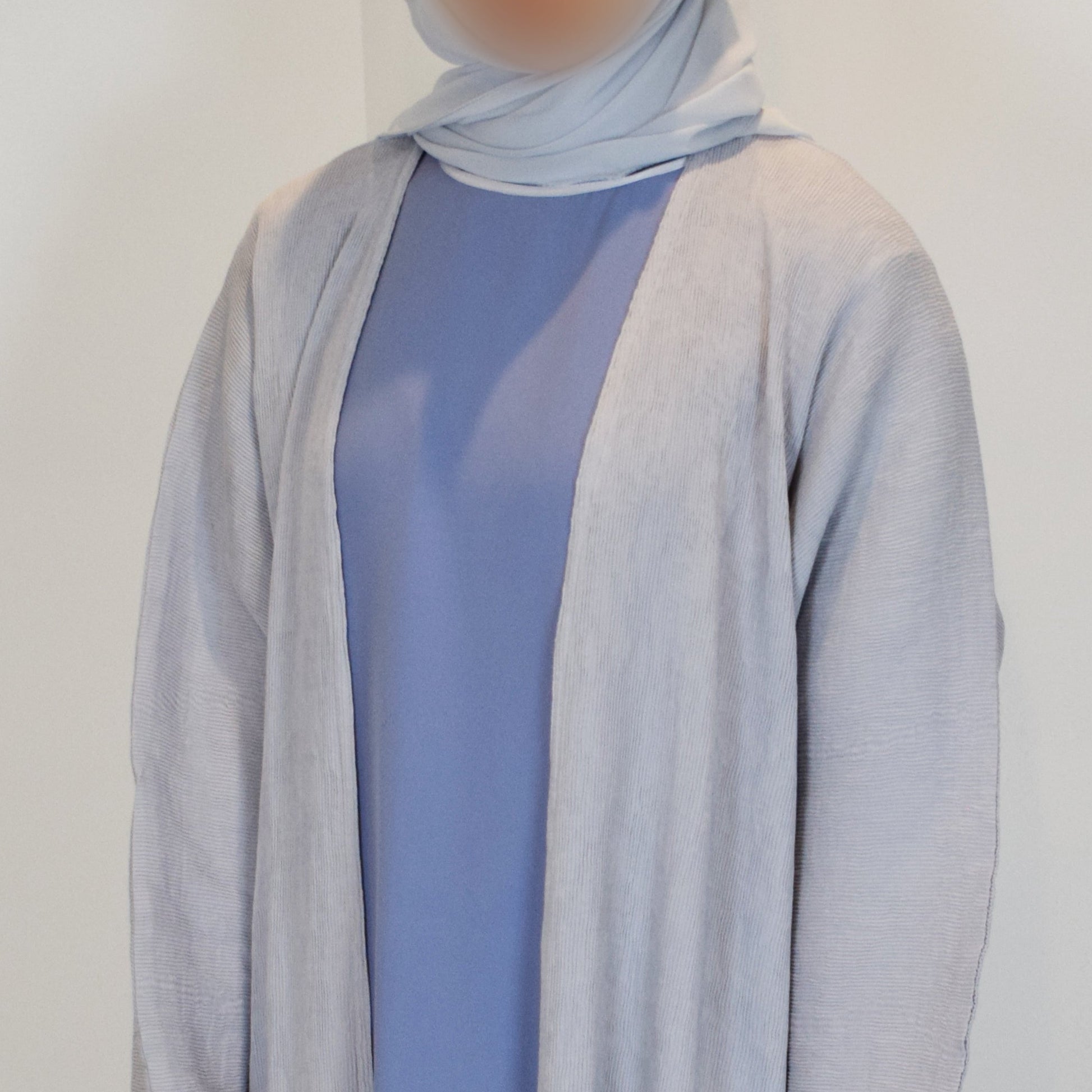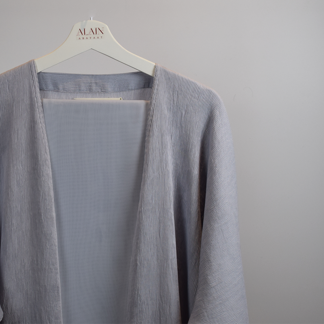 This pleated crepe abaya features a wrap style, making it suitable for all climates. Its modern lavender colour adds a touch of elegance, while the crepe fabric provides a comfortable and lightweight feel. Perfect for those seeking style and comfort year-round. Matching modern lavender chiffon hijab included.